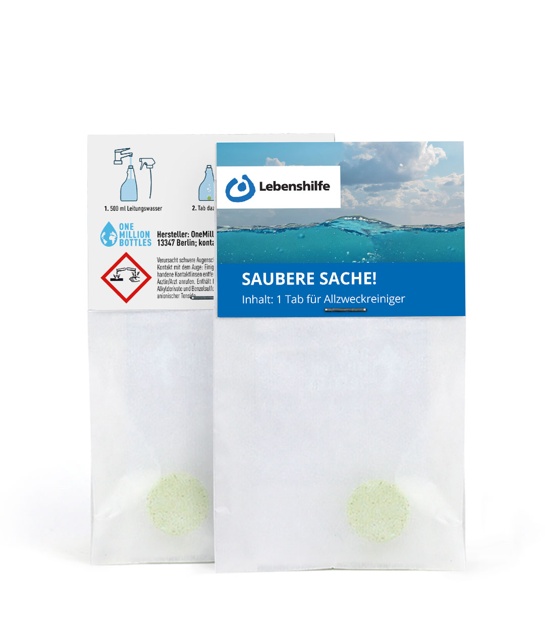 Allzweckreiniger bestehen zu mehr als 95 Prozent aus Wasser. Wir produzieren Reinigungstabletten, mit denen man Allzweckreiniger für Haushalt, Bad und Küche selbst herstellen kann. Dazu wird eine Putztablette in eine vorhandene Flasche gegeben und mit Wasser aufgefüllt. Das Ergebnis ist ein vollwertiger Allzweckreiniger. Die bereits im Haushalt befindliche Flasche wird nicht mehr weggeworfen, wenn sie leer ist, sondern kann immer wieder nachgefüllt werden.