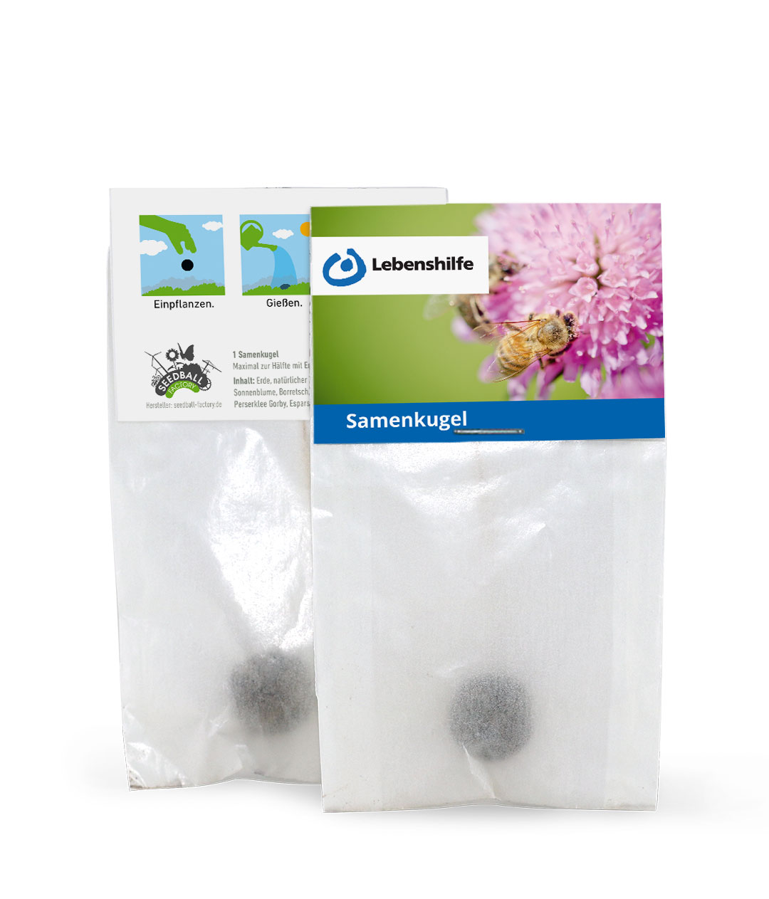 Unsere handgeformten Seedballs (Samenbomben) bestehen aus einer nachhaltigen Samenmischung, torffreier Erde und natürlichem Ton. Die steinharten Kugeln können über Mauern und Hindernisse hinweg auf Brachflächen, Industrieanlagen und sonstige graue Orte geworfen werden. Der natürliche Ton schützt das Saatgut vor Vögeln und anderen Tieren. Beim nächsten Regen oder wenn mit Wasser nachgeholfen wird, weichen die Samenkugeln auf und die Samen fangen in der torffreien Erde an, zu keimen. So kommt die Natur zurück in die Stadt und es entsteht ein Paradies für Bienen, Schmetterlinge und weitere nützliche Insekten.