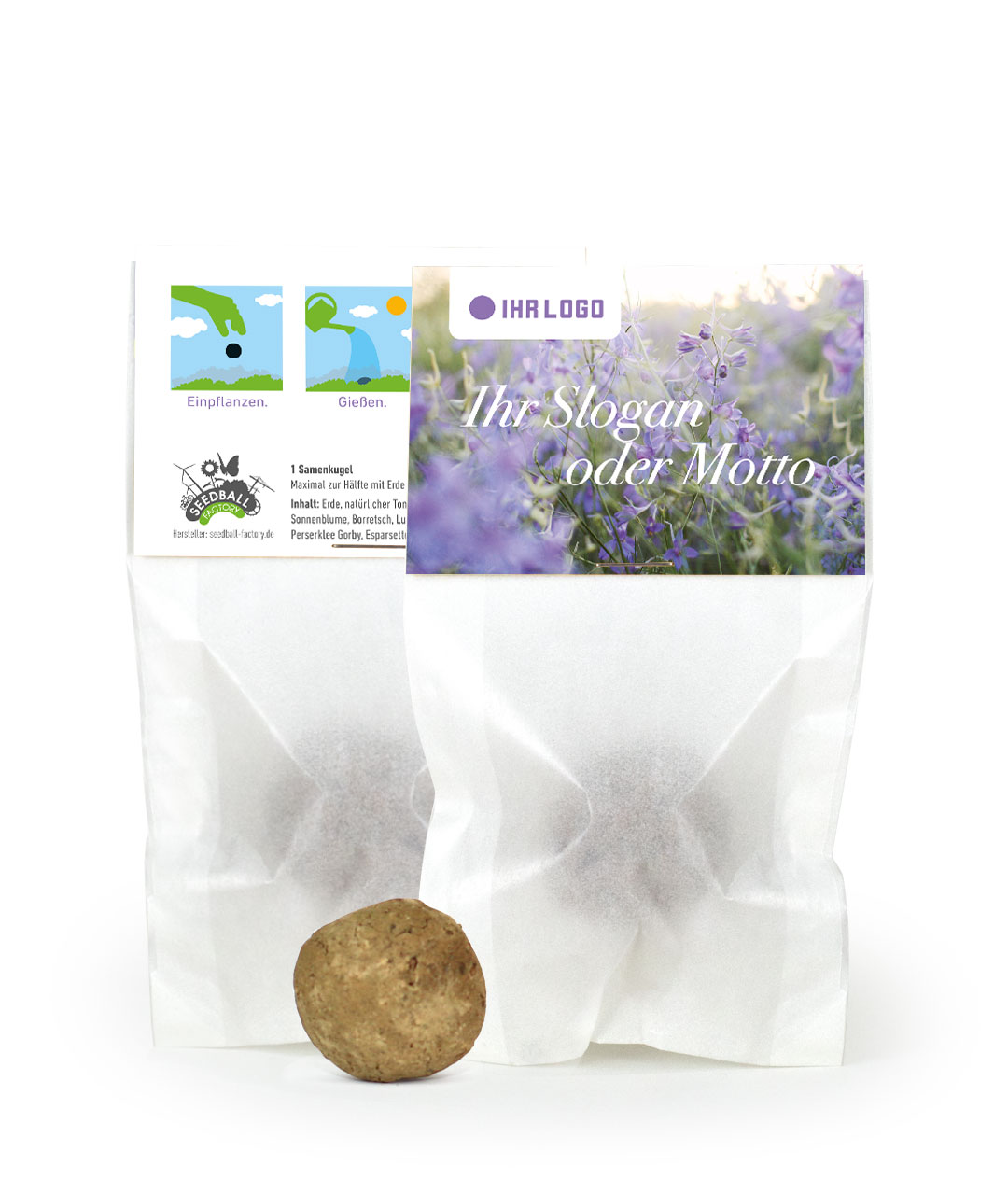 | Größe Samenkugel | Gewicht ca. 4 Gramm; Durchmesser ca. 25 mm, handgeformt |