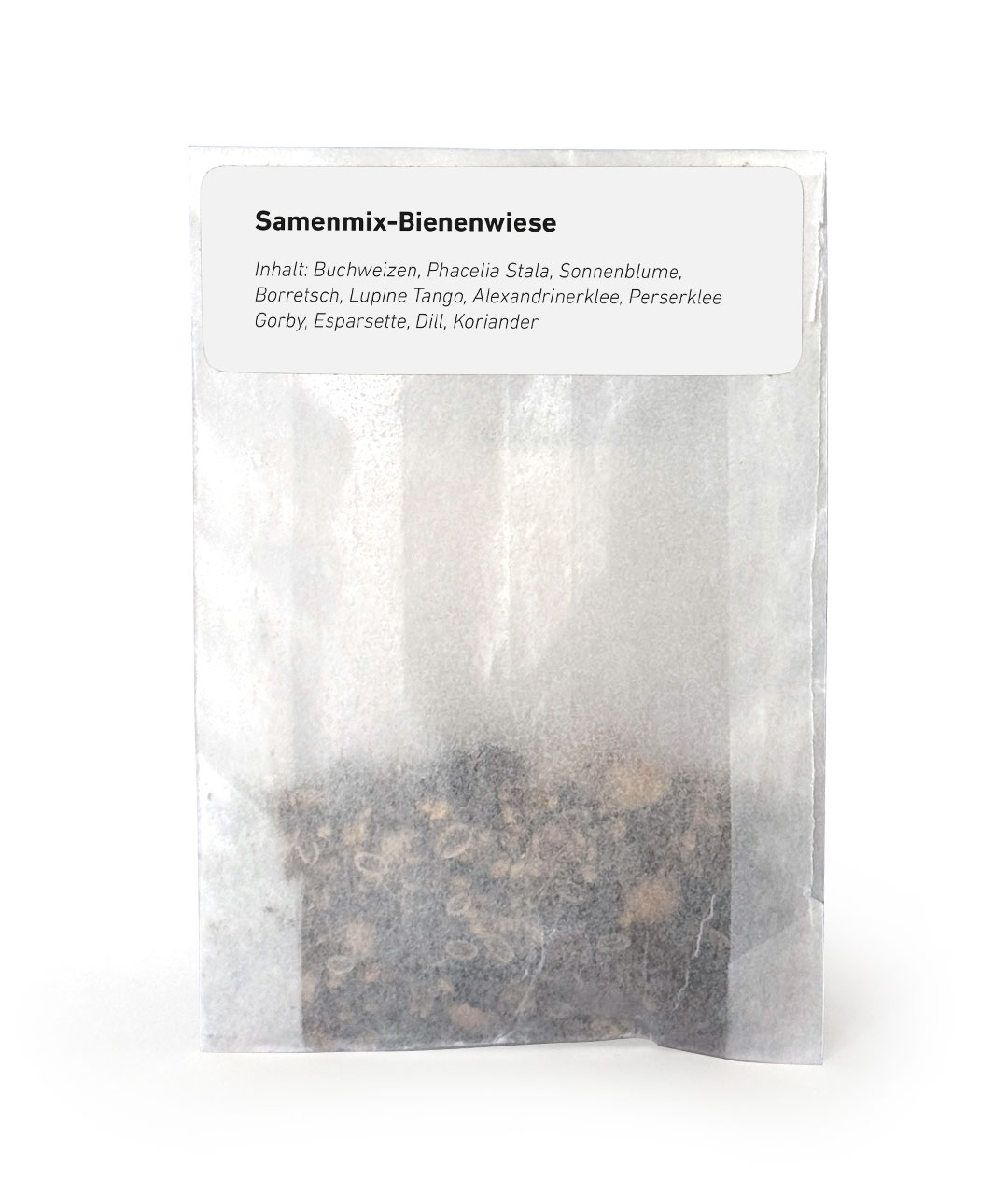 | Samenmix Bienenwiese (am beliebtesten) | Buchweizen, Phacelia Stala, Sonnenblume, Borretsch, Lupine Tango, Alexandrinerklee, Perserklee Gorby, Esparsette, Dill, Koriander